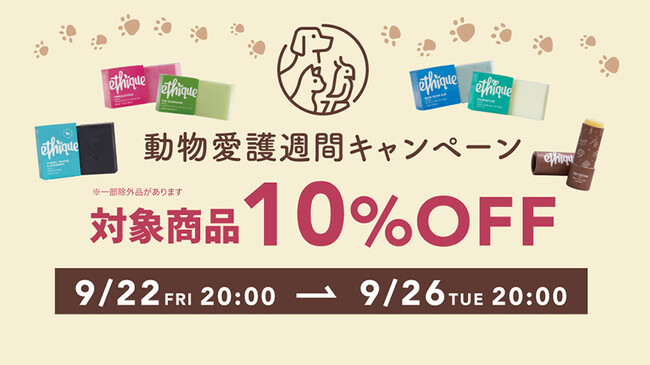 「エティーク」の公式通販サイト「ethicame(エシカミー)」では、動物達が犠牲にならないクルエルティフリーコスメを【10%OFF】でご購入いただけるキャンペーンを下記日時にて実施いたします。