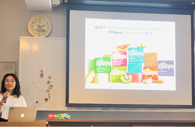 株式会社ピー・エス・インターナショナル(本社:東京都港区、代表取締役会長兼CEO 浜口 直太、代表取締役社長兼COO 北川 睦子)が展開する、NZ発サステナブルビューティーバーブランド「エティーク」は、2023年7月31日(月)にブランドマネージャー・北川(愛己)が講師としてお招きいただき、筑波大学附属坂戸高等学校(埼玉県坂戸市千代田)で講演を行わせていただきました。