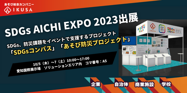 あそびで社会課題の解決を支援する株式会社IKUSA(本社:東京都豊島区、代表取締役:赤坂大樹)は、2023年10月5日(木)~7日(土)に愛知国際展示場(Aichi Sky Expo)にて開催される「SDGs AICHI EXPO 2023」に初出展します。