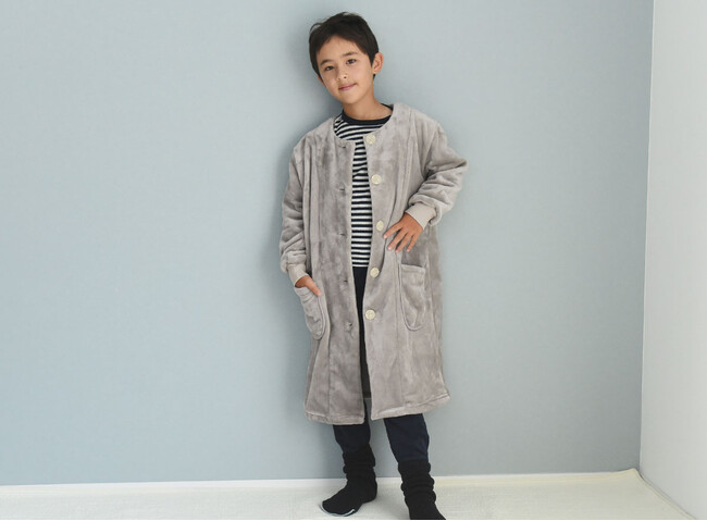 「伝説の毛布」ならではの、ふわっと軽くてあたたかな気持ち良さを、ベッドの外でもお楽しみいただける一着。小学生の湯冷め対策や、朝のお目覚めに、「風邪ひかないでね」の想いを込めてお届けします。