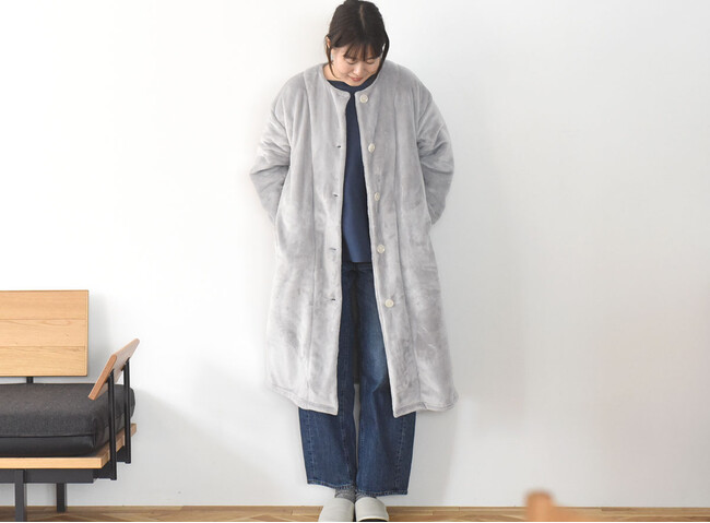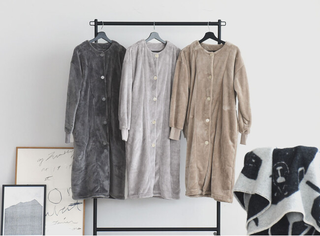 1枚着るだけで、毛布に包まれるあたたかさをずっと感じられるガウンは、冬の寒さ対策だけでなく、暖房費の節約などエコにも◎。