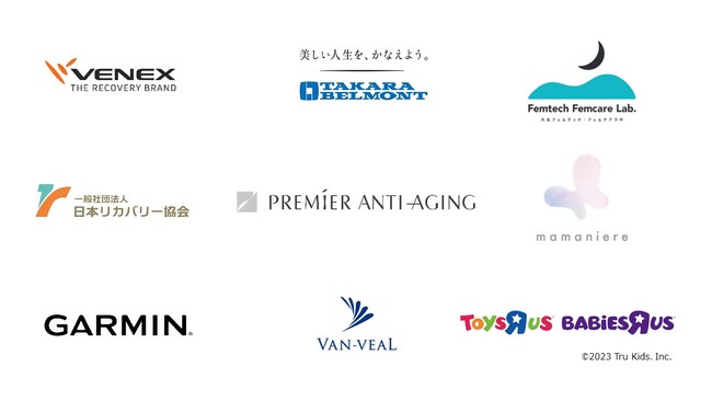 株式会社ベネクス/タカラベルモント株式会社/株式会社大広(大広フェムテック・フェムケアラボ)/一般社団法人日本リカバリー協会/プレミアアンチエイジング株式会社/株式会社ポーラ/ガーミンジャパン株式会社/株式会社ビ・メーク/日本トイザらス株式会社(順不同)