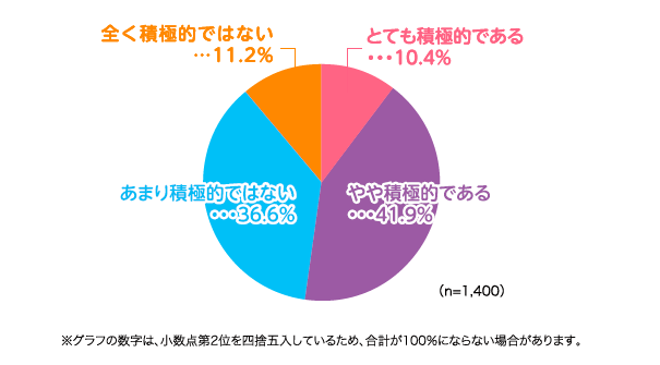 一方、「全く積極的ではない」(11.2%)という回答は1割程度みられます。