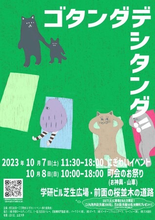 にぎわいイベント「ゴタンダデシタンダ!!」は、毎年10月初旬に行われる地域の神事である雉子神社例大祭と一体となってにぎわいを創出することを目的に、今回初めて実施する西五反田一二三町会(にぎわいイベント実行委員会)が主催する地域イベントです。本イベントは、にぎわいの創出だけでなく、地区の魅力である学研ビル公開空地の芝生広場や地区中央を東西に走る桜並木の道路などの公共空間をくつろいだり遊んだりできる空間として活用することにより、今後の地区のまちづくりを考えるきっかけとすることも目的としています。