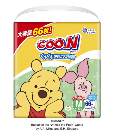 そこで、パンツタイプのベビー用紙おむつ「グーン まっさらさら通気」を3年ぶりに大幅リニューアル。“モレにくさ”を追求したシリーズとして商品名を「グーン ぐんぐん吸収パンツ」に変え、ディズニーデザインのパッケージも一新して生まれ変わります。また、Mサイズは商品のウエストの長さをアップすることで、“1つのサイズで長く使える”仕様にしました。今後も生活者のニーズに応え、赤ちゃんとママ・パパが快適な毎日を過ごせるよう応援してまいります。