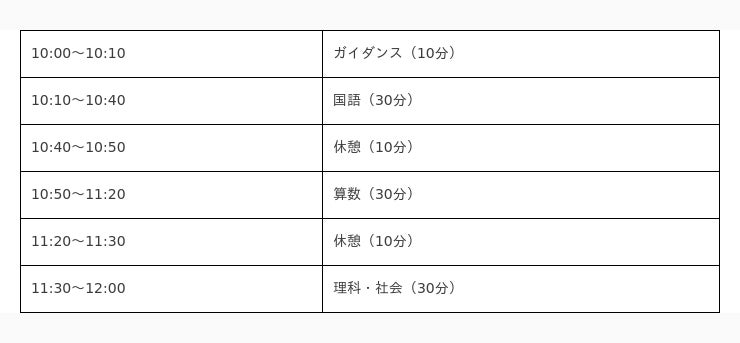 算数・国語(各30分)、理科・社会(合わせて30分)