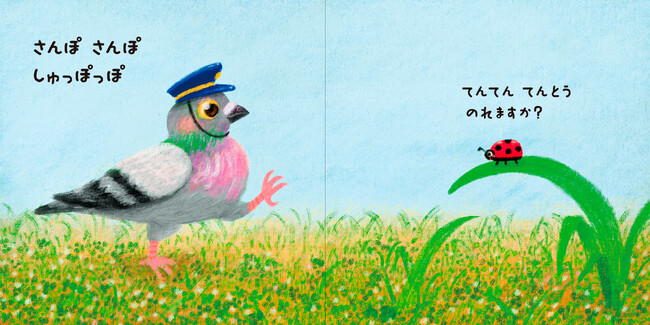 「しゅっぽっぽ」のリズムが心地よい絵本『さんぽっぽ』(たなかしん作)。はとの車掌さんと、野原の仲間たちが織りなす心温まる物語は、思いやりの気持ちを育みます。
