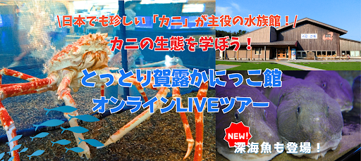 鳥取県にあるカニを中心に様々な水生生物を展示・紹介している水族館「とっとり賀露かにっこ館」からお届けする、鳥取県のカニや鳥取の水生生物の生態を学ぶことができるスペシャルオンラインツアーです。