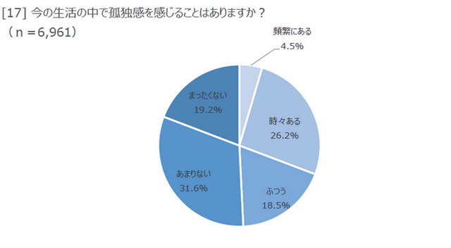 「今の生活の中で孤独感を感じることはありますか?」という質問に対して「時々ある」が26.2%、「頻繁にある」が4.5%と約3割が孤独感を感じていることがわかりました(子育て期 n=6,961)。
