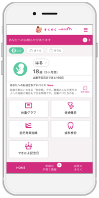 今回、ICTを活用した新たな子育て支援策として、母子健康手帳の記録から地域の情報までをスマートフォンやタブレット端末にて簡単にサポートでき、570以上の自治体で導入されている『母子モ』が採用されました。