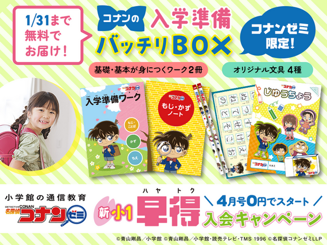 1. 新小1早得入会キャンペーン特別教材「コナンの入学準備バッチリBOX」