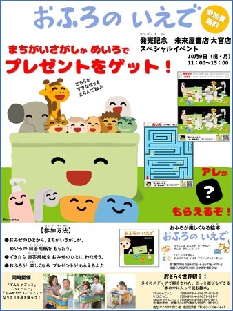 新井洋行先生の新作絵本『おふろの いえで』の発売を記念したスペシャルイベントを、10月9日(祝・月)に未来屋書店大宮店にて開催いたします。