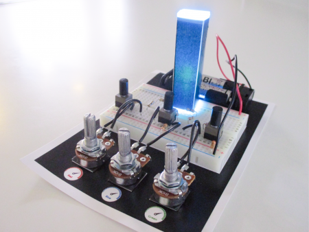 光の三原色のLEDを使って、様々な色の光を作ることができる装置を作ります。