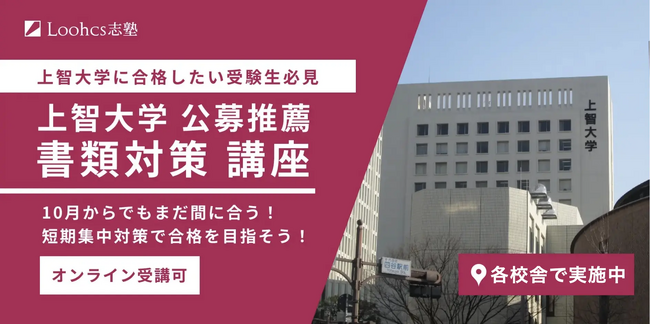 申し込みフォームの希望日程・時間の欄に、「上智大学 書類対策講座」と明記のうえ、お申し込みください。