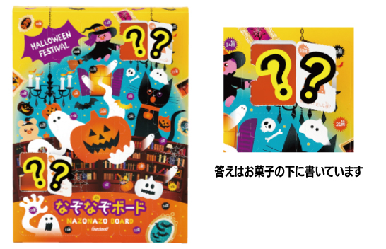 今年も「配る」「食べる」「遊ぶ」をコンセプトにしたお菓子が登場します。毎年人気のすごろく付きのお菓子「ハロウィンファンボックス」や、ハロウィンテーマのなぞなぞを解いてお菓子を食べる「ハロウィンなぞなぞボード」等、合計12商品を発売いたします。