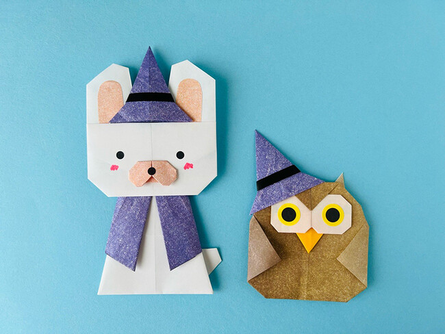新刊『カミキィの<かわいい・楽しい>どうぶつおりがみ』に登場する「うさぎ」と「ふくろう」をハロウィンアレンジに。カミキィさんといっしょに折りましょう!