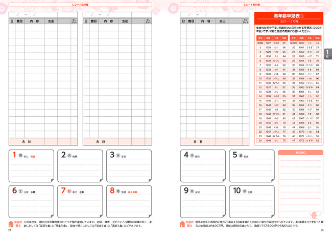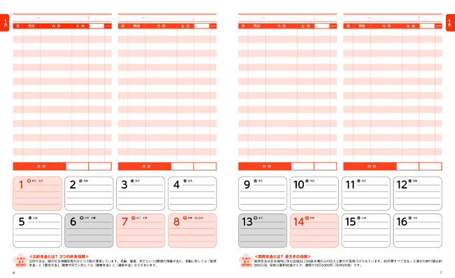 ▲自由につけられるフォーマットに、「満年齢早見表」やコラムも充実。