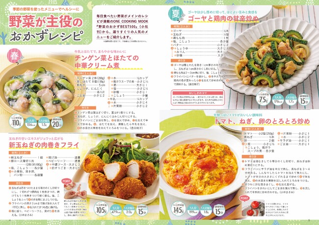 ▲巻頭では、簡単につくれてメインになる「野菜が主役のおかずレシピ」を紹介。