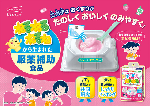 ”子どもの服薬を補助する”「おくすりパクッとねるねる」は、実際に医療現場の薬剤師から「子どもにお薬を飲ませる際にねるねるねるねを使用している」という声を頂いたことがきっかけで生まれた商品です。