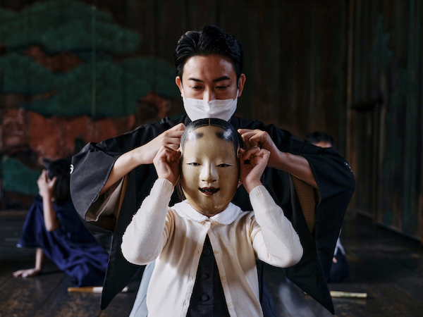 今年はもう一歩踏み込み、より深い体験を提供します。数百年という歴史をもつ貴重な能面や鬘帯(かづらおび)に加え、風格ある子方用の装束に身を包み、日本の伝統と直接繋がる瞬間を味わうことができます。