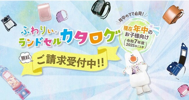 2025年度カタログ予約は「ふわりぃランドセル」の公式ホームページ内(https://fuwarii.com/contact/n_randsel)で受け付け、カタログの発送は2024年2月初旬以降、順次行う予定です。