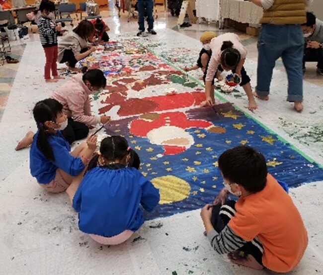 大きな紙に季節のお野菜の絵をみんなで描くワークショップです。