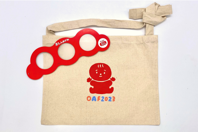 来場者プレゼントの「赤ちゃんめがね(TM)」とオリジナルサコッシュ(大人の入場者対象・先着配布)