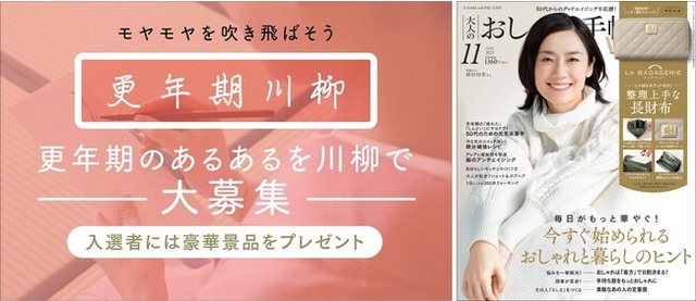 ファッション雑誌販売部数トップシェア(※)の株式会社宝島社(本社:東京都千代田区、代表取締役社長:蓮見清一)が発行する女性ファッション誌『大人のおしゃれ手帖』は、2023年9月15日より「更年期川柳大賞」の募集を開始しました。