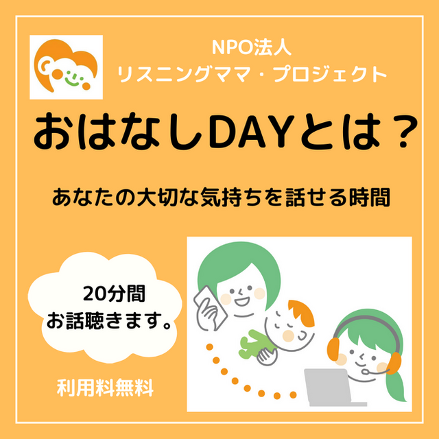 私たちのメイン事業は、妊産婦から子育て中の母親たちの心の健康を守る、無料傾聴オンラインサービス「おはなしDay」。母親たちの孤独感の解消、不安・ストレス軽減を目的に活動を続けてきました。
