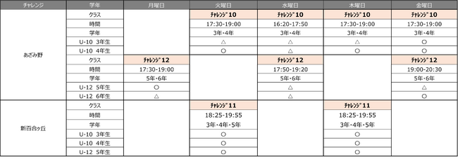 ※チャレンジクラスとは、選抜コースの入り口となるクラスとなります。チャレンジクラスに所属後に一定期間のプレーを高く評価された後に、アドバンスクラス、セレクトクラスとクラスを上げていく推薦制度・リフレッシュ選考会というものがございます。活動は平日トレーニングとなります。従って、所属されるクラブでの活動が主となります。