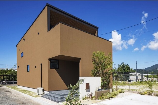 ▲落ち着いた茶色の塗壁と2Fの軒裏が美しい外観デザイン