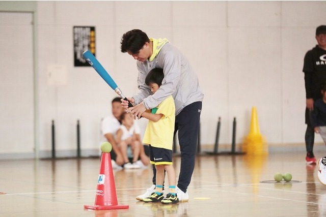 小林正信くん(6歳)は、「上手にボールが蹴れてうれしかった」と大喜びし、正信くんのお母さんは、「普段は、あまり運動しないので、たくさんの子どもたちと一緒にスポーツを楽しめる場は貴重だった」と話してくれました。また、中村茉奈さん(8歳)は、「野球のバットの持ち方を初めて知った」と新たな発見をしていました。茉奈さんのお父さんは、「基本的な運動技術を学べたので、非常に有意義な時間だったと思います」と感謝の気持ちを頂きました。