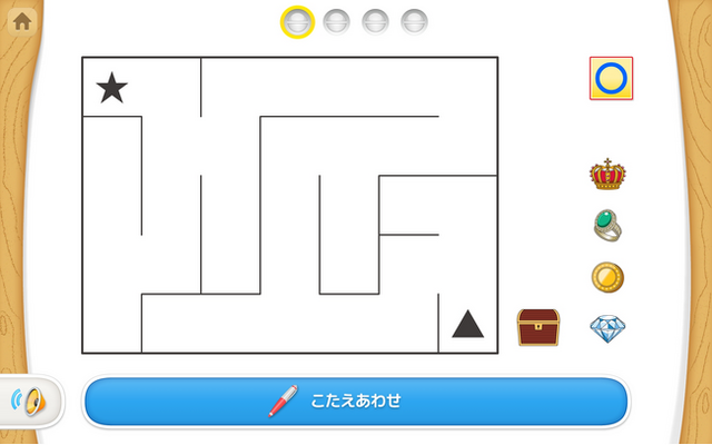 追加コンテンツは、「はじめての めいろ」と「めいろ」の2つのレベルに分かれており、問題後半の難易度は小学校受験レベルとなっています。
