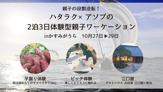 「働く幸せを感じるかっこいい大人を増やす」というビジョンを掲げ、HR事業を展開するインビジョン株式会社は、茨城県かすみがうら市から委託を受け、かすみがうら市親子ワーケーションツアーの企画・運営を行っております。今回は「親子の役割逆転!ハタラク×アソブの2泊3日体験型親子ワーケーション」という今までにない親子ワーケーションの実証のため3組限定、参加費無料でモニターを募集いたしますので、奮ってご応募ください。