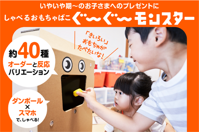「ぐ~ぐ~モンスター」は、おもちゃコンサルタントとタッグを組んで開発した、いやいや期のお子様の片付けをサポートする“お片付けエンターテインメント”プロダクトです。アイデアに共感したKonelとタカムラ産業がタッグを組んで開発し、スマートフォンとダンボールで“しゃべるおもちゃ箱”が完成しました。クラウドファンディングサイトCAMPFIREで10月11日(水)より受け付け開始します。