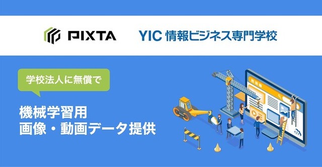 国内最大級の画像素材数を誇る「PIXTA」の特徴を活かして展開中の「ピクスタ機械学習用画像・映像データ提供サービス」は、学校法人YIC学院 YIC情報ビジネス専門学校に、AI開発に必要な機械学習用の画像データを無償で提供いたします。