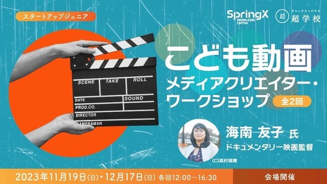 弊社ホライズン・フィーチャーズは、この度、ナレッジキャピタルが展開する学びのプログラム「SpringX 超学校」にて『こども動画メディアクリエイター・ワークショップ』を開催します。講師は、ドキュメンタリー映画監督の海南友子(ホライズン・フィーチャーズ)がつとめます。