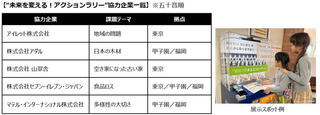 こどもが主役の街「キッザニア東京」「キッザニア甲子園」「キッザニア福岡」は、 楽しみながらSDGsを学ぶことができる「キッザニアSDGsセンター」で実施している“未来を変える!アクションラリー” の展示スポットを2023年10月10日(火)からリニューアルします。「キッザニアSDGsセンター」では、キッザニア誕生のストーリーを知り、地球の未来のために何ができるかを一緒に考えたあと、“未来を変える!アクションラリー!”に参加します。アクションラリーでは、キッザニアの街に設置された展示スポットをめぐりながら、地球が抱える課題に関するクイズに挑戦します。展示スポットの課題解決に向けた実例を参考にして、より良い未来のために自分ならどんなアクションができるのかを考えて最後にアクション宣言をします。