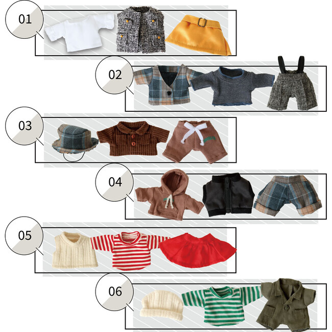 2023年秋冬は全6種類のセットを販売。3アイテムが1セットになっているので、1セットだけでおしゃれなコーディネートが完成します。