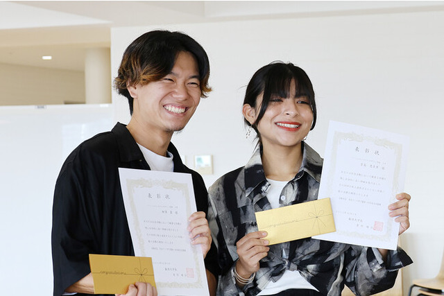 この優勝を称え、10月5日(木)、有信学長から学生2人に表彰状が授与されました。
