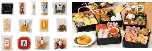当社の「千年だしつゆ」を使用した京のお煮しめや卵がぎっしり詰まった一本羽を使った北海道小樽産味付け数の子など、全15品。