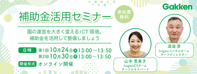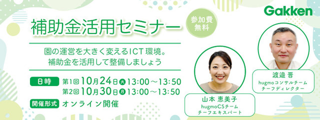 株式会社 学研ホールディングス(東京・品川/代表取締役社長:宮原博昭)のグループ会社、株式会社 Gakken(東京・品川/代表取締役社長:五郎丸 徹)は、2023年10月24日から幼稚園・保育所向け 無料オンラインセミナーを開催します。