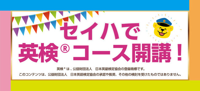 セイハネットワーク株式会社(福岡県福岡市,代表取締役:坂口 正美,以下セイハネットワーク)は、「英検(R)コース」新たに開設いたします。このプログラムは、英検の「勉強の仕方がわからない」「お家では集中できない」そんなたくさんのお客様のお悩みにお応えできるコースとなっております。英検は中高大の受験で加点対象となったり、合否判定を優遇されたりなど、年々需要が増えてきています。セイハの英検コースは、日本人講師のサポートはもちろんのこと、外国人講師のサポートもありますので、二次試験対策もばっちりです!目標設定から合格までをしっかりとサポートさせていただきます。セイハ英語学院にお通いでないお子さまも大歓迎です。「セイハ」だからできる「英検(R)コース」を軸にお子様の英検合格を全力でサポートいたします。