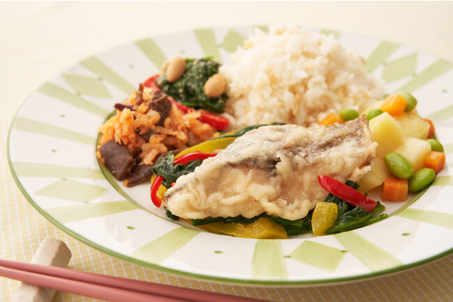ダイズライスを使用した商品は、「かつお節香る回鍋肉」「アジのフリット 野菜たっぷりさわやかマリネ」の2種類があり、ママの休食の冷凍弁当の新メニューとして登場します。冷凍弁当の主食は、通常玄米と白米のブレンドを使用していますが、本商品では、ダイズライスと白米をブレンドしており、ダイズライスを手軽にはじめていただけるよう工夫しています。