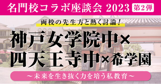 この度、毎回ご好評をいただいております「名門校コラボ座談会」の2023年度 第2弾といたしまして、《神戸女学院中×四天王寺中×希学園》を下記要領にて実施いたします。