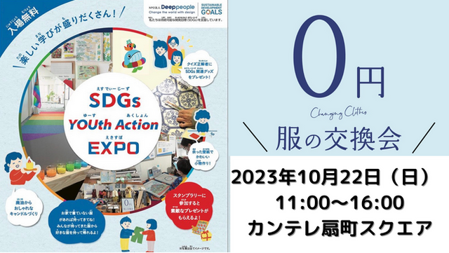 「人々の毎日に、幸せや歓びや感動の溢れる世界をつくる。」を企業コンセプトに掲げる株式会社ワンピース(本社:兵庫県加古川市、代表取締役:久本和明、以下ワンピース)は、昨年度受賞した学生・教員による取り組み発表と同時に、企業・行政等が行っているSDGsの取り組みを紹介するイベント「SDGs YOUth Action EXPO」に、すでに延べ3万人以上が参加している「服の交換会」を出展いたします。