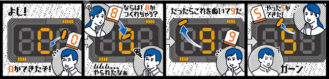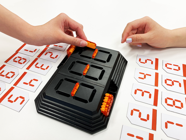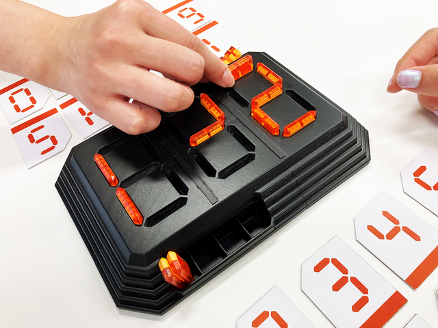 作成するデジタル数字は立体的なセグパーツで構成され、本体エリアも凹んでおり、本体とセグパーツが「どこに置かれているか」「置かれていないか」が触感でもわかります。あわせて、カードの数字部分も立体的になっていることで触って数字が認識でき、目の不自由な方でも遊べる仕様とし、この点が評価され、日本おもちゃ大賞2023共遊玩具部門「優秀賞」を受賞しました。