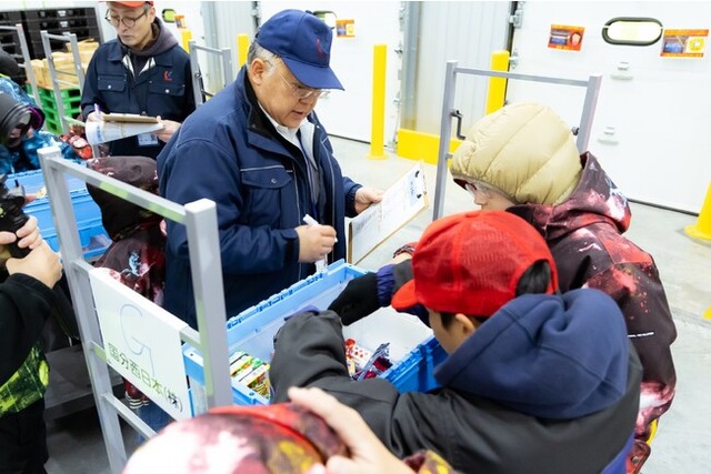 国分グループが参加する4回目のイベントとなる今年は、初の試みとして、約11,000種の商品が揃う国分グループ関西総合センター(大阪府茨木市丑寅1₋1₋88)に子どもたちを招待し、卸売業における物流現場や作業風景を実際に見学・体験してもらいました。