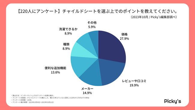 「Picky’s」は、インターネットショッピングにおいて、購入前に試せない・選ぶべきものがわからないという課題の解決を目標に、あらゆる商品のおすすめランキングや検証レビューを紹介するサイトです。このたびPicky’s(https://rentry.jp/note/)では、チャイルドシートについてインターネット上でアンケート調査を行いましたので発表いたします。