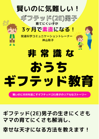 初めまして。親子のコミュニケーションをスムーズにして子どもの発達を加速する「発達科学コミュニケーション 」子育て講座講師の神山彰子と申します。 この度は、賢いのに気難しく、お母さんが育てにくさを感じるギフテッド(2E)男子が人との関わりで天才性を伸ばすという非常識なギフテッド教育について解説した小冊子をリリースいたしました。